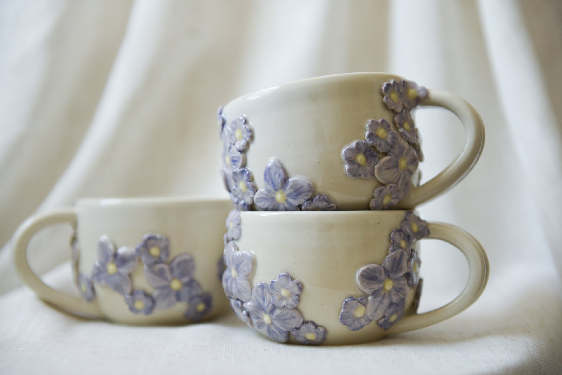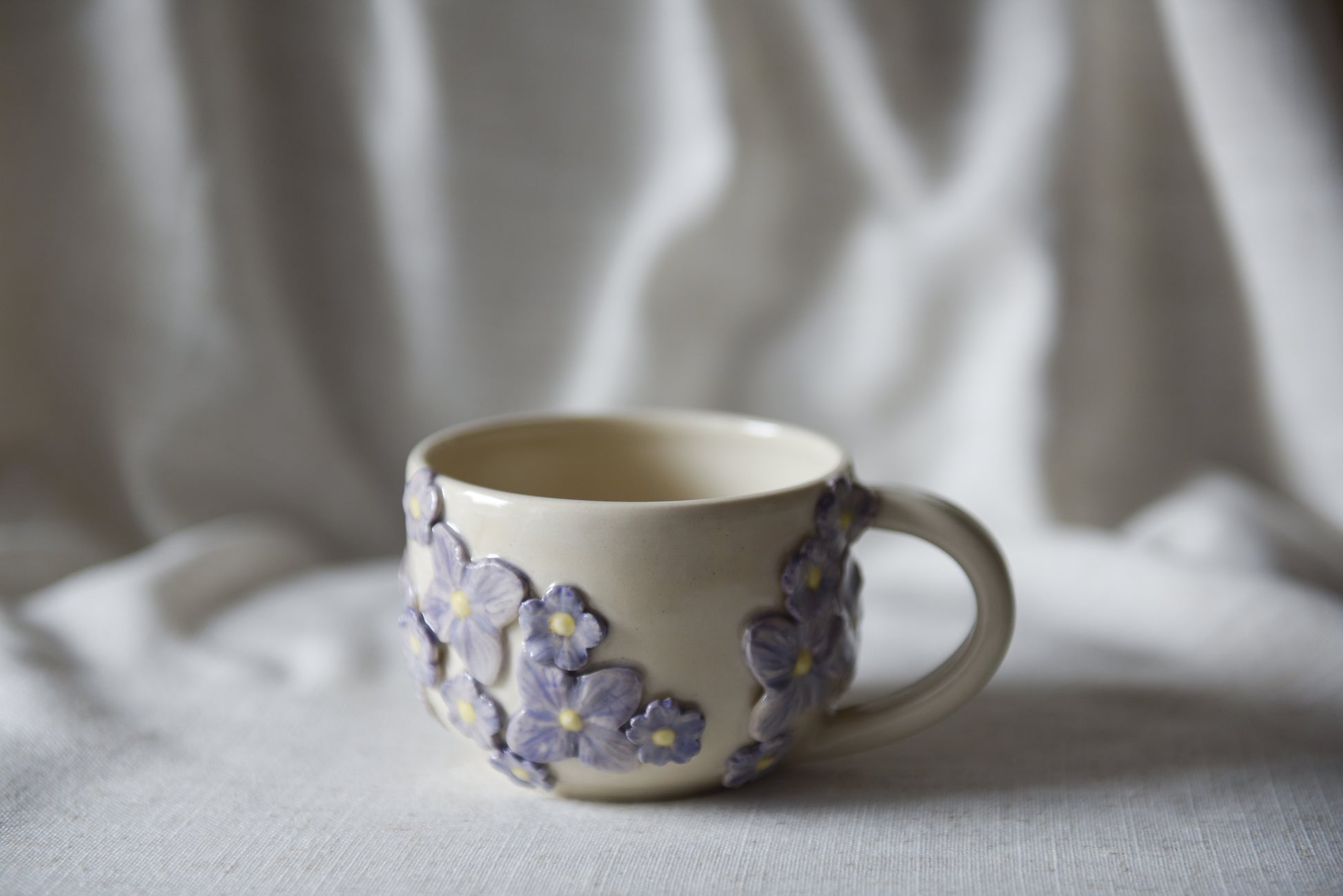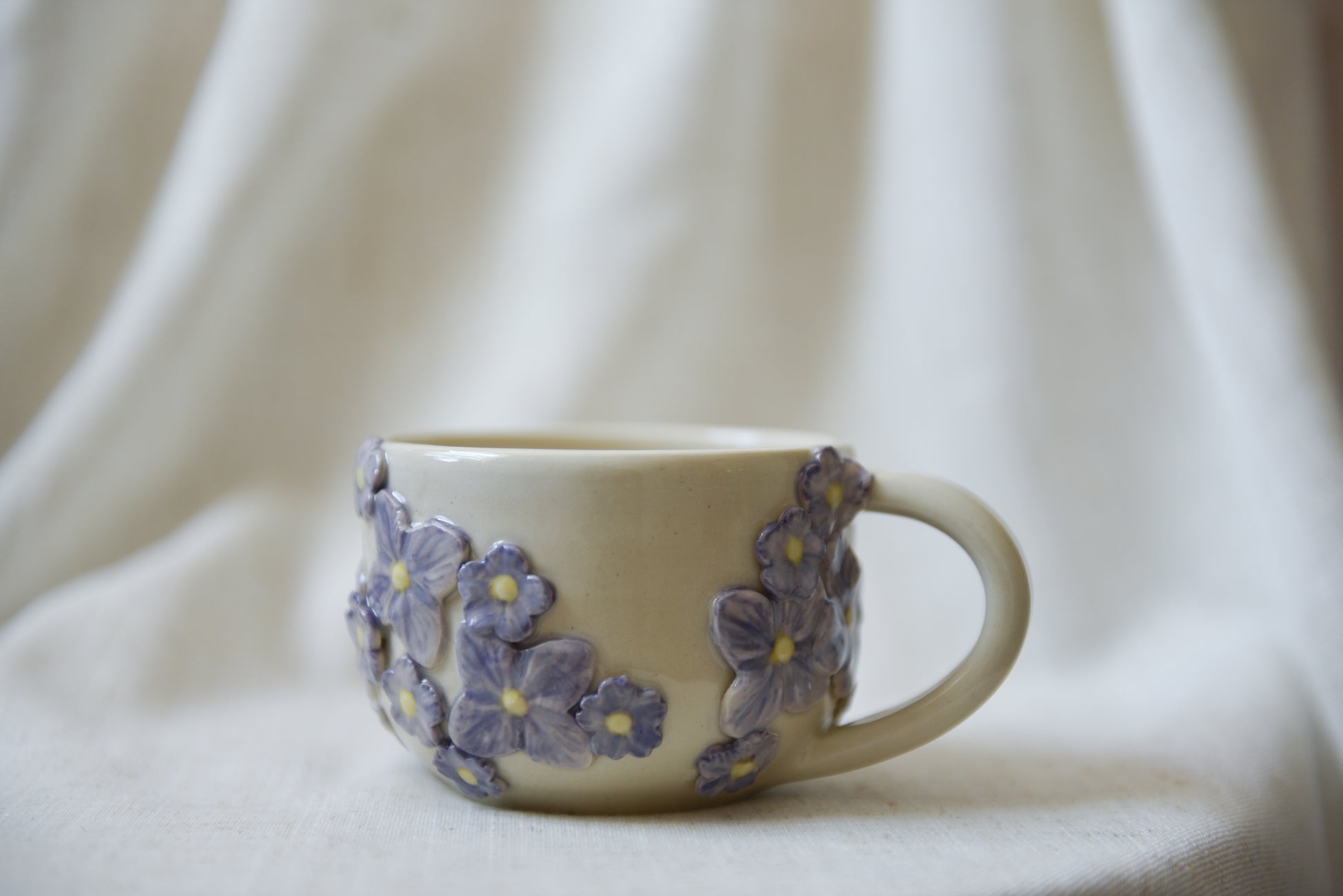 This lovely latte mug is wheel-thrown using a sturdy stoneware clay and coated in a lead-free glaze. All details were hand painted.