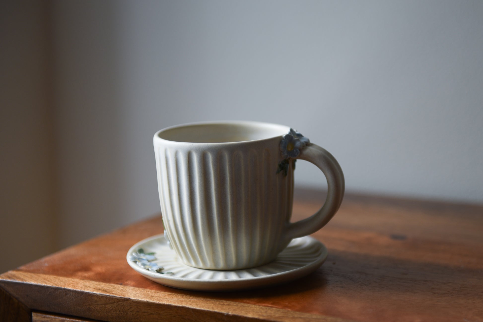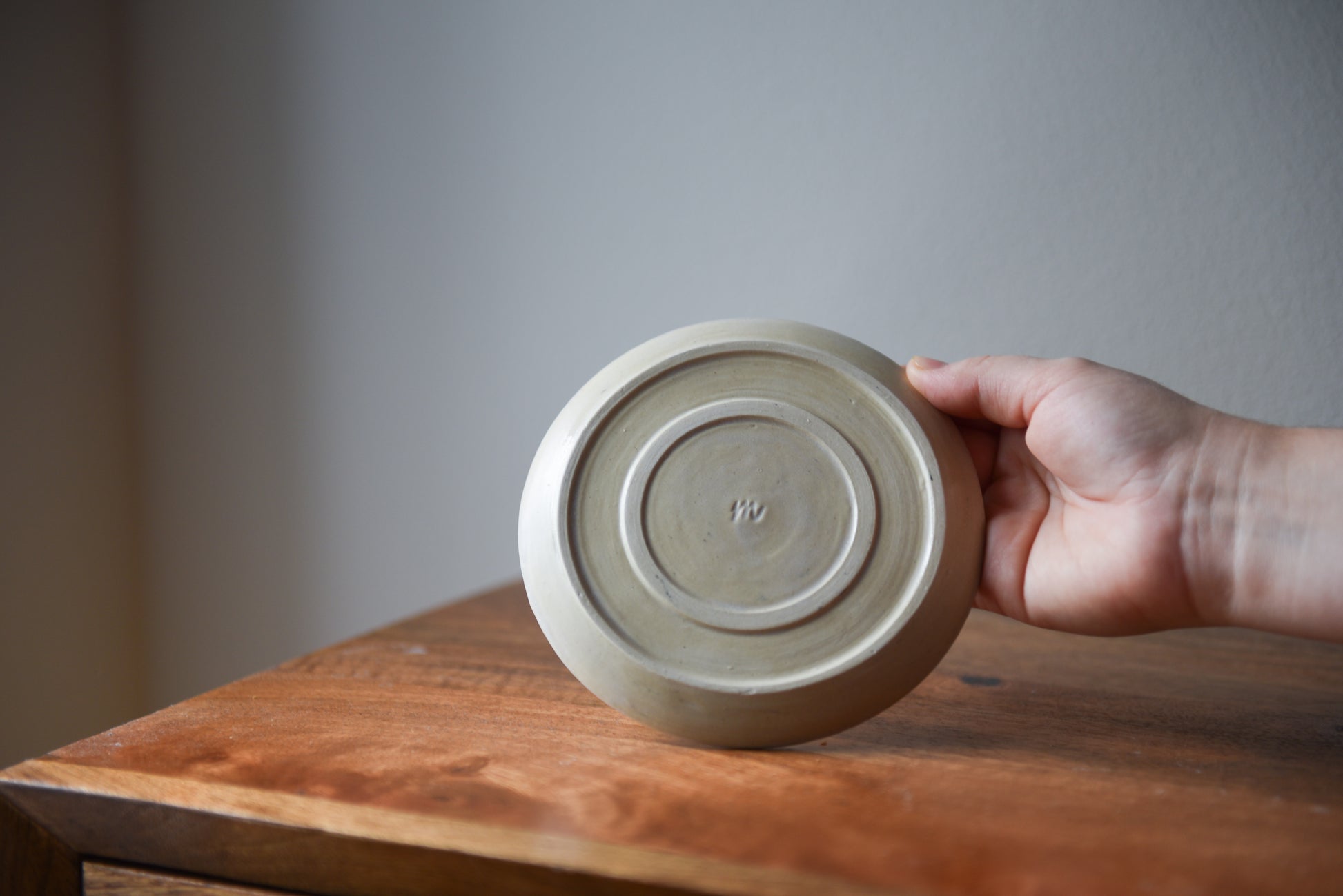 This handmade plate was wheel thrown using a stoneware clay and lead-free glazes. Mug not included with purchase.