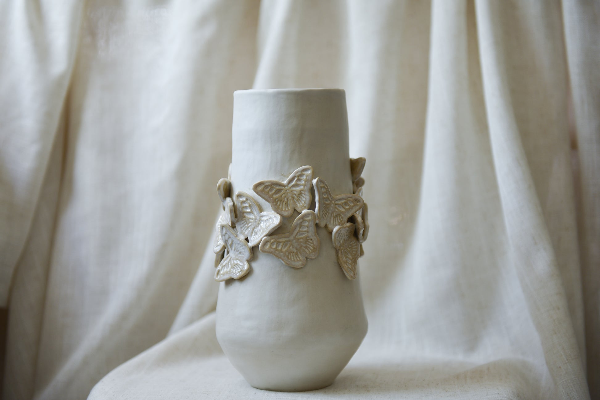 White Butterflies Vase